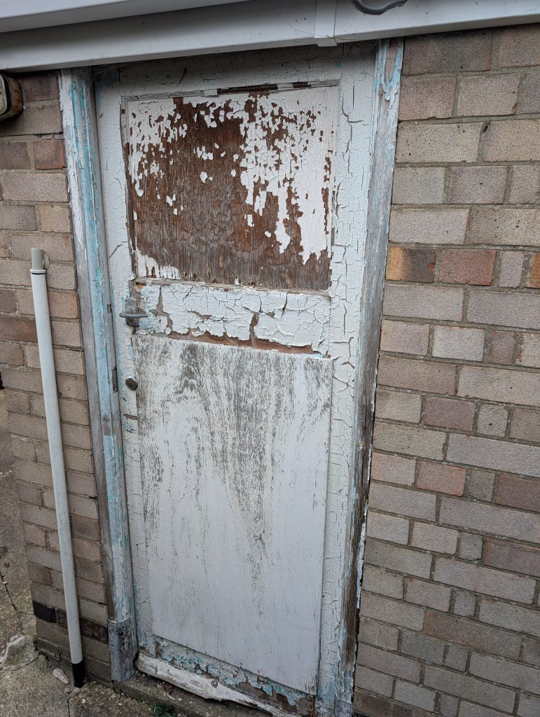 Mrs. O was worried about a rotten side door and believed it needed replacing. After having a look, it had definitely seen better days and I presented her with some options, considering new, second-hand, and custom-built, after going away and pricing them all up building a door from scratch proved to be the most cost-effective solution, much to the customer’s delight!